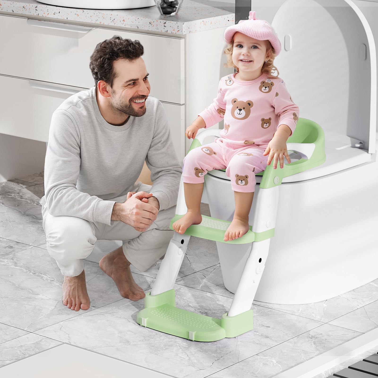 # Kids Toilet Trainer with Potty Transform your child's bathroom routine with this comprehensive toilet training system. Designed with developmental expertise, this two-in-one trainer combines a standalone potty seat with an elevated toilet adapter, allowing your child to progress at their own pace. The ergonomic design ensures comfort and stability, while the removable bowl simplifies cleaning and maintenance. Non-slip feet prevent shifting during use, promoting confidence and independence. Ideal for children aged 18 months to 4 years, this trainer bridges the gap between diapers and independent bathroom use. Lightweight and portable, it's perfect for home, travel, or grandparent visits. An essential investment in your child's developmental milestone.