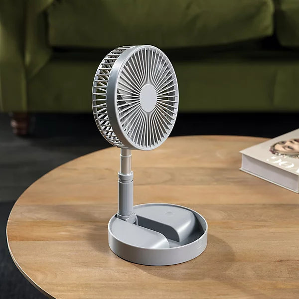Stay cool anywhere with this innovative telescopic foldable recharge fan. Featuring an adjustable telescopic design, it extends to your preferred height and collapses for effortless portability. The rechargeable battery eliminates the need for constant replacements, making it eco-friendly and cost-effective. Perfect for home, office, or travel, this fan delivers reliable airflow with a sleek, modern aesthetic. Compact yet powerful, it's the practical cooling solution for every season.